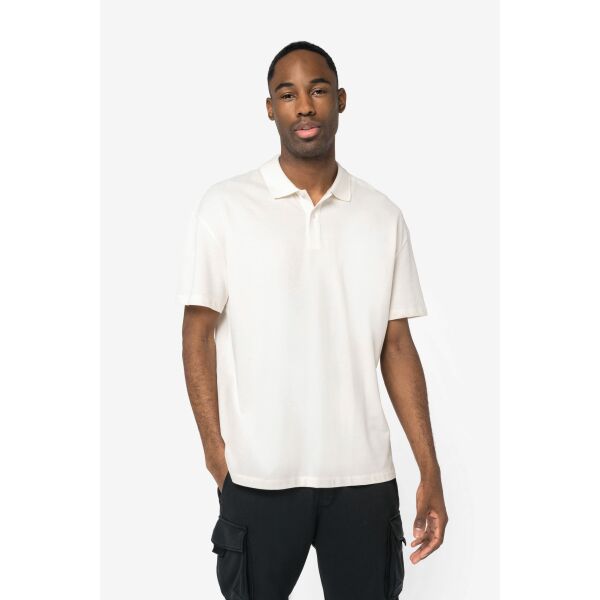 • Ecologische herenpolo van piquétricot met afhangende schouders Ivory XXL